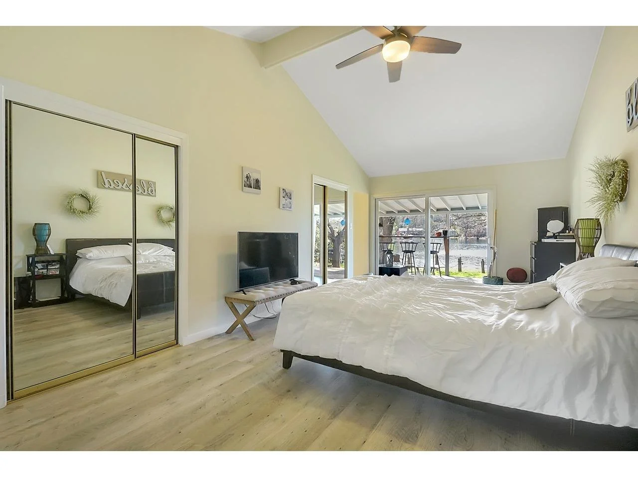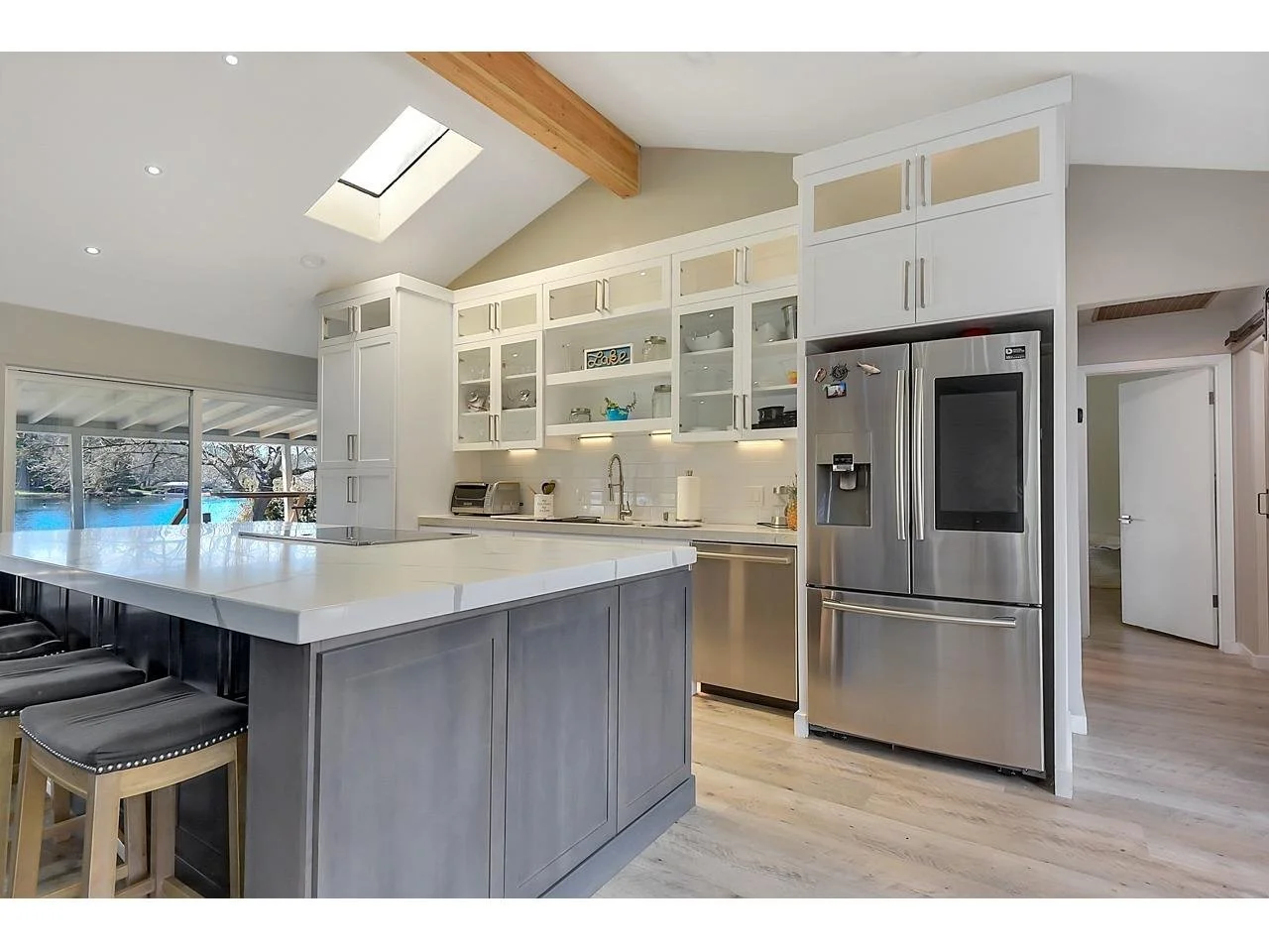 The open interior features a modern kitchen with Thermador appliances, a large island, and thoughtfully updated living spaces. Enjoy a relaxed lakefront lifestyle with boating, kayaking, paddle boarding, fishing, golf, and community amenities—all just steps from the water.