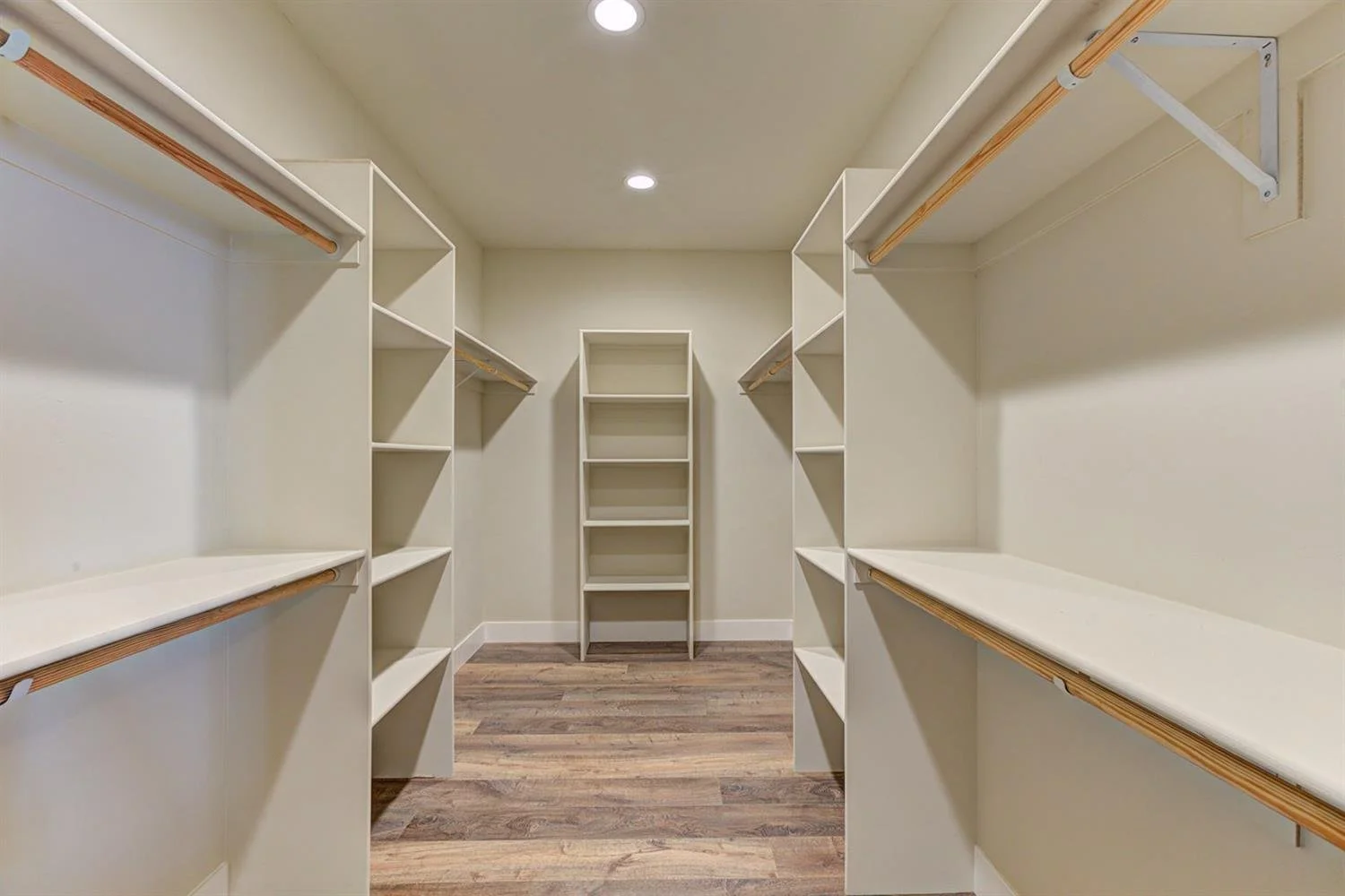 A true luxury walk-in closet designed just like the ones you see in Hollywood homes — oversized, thoughtfully divided into sections, with dedicated shelving and full-length hanging space to keep everything perfectly organized.