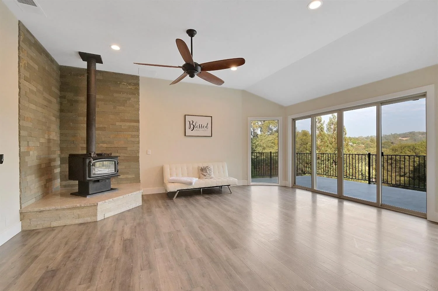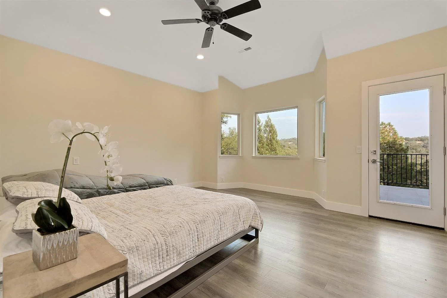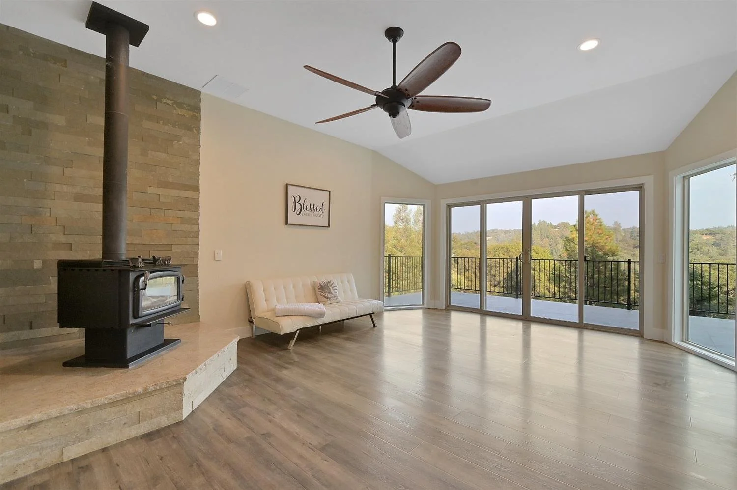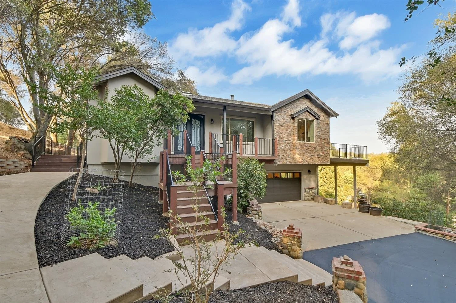 Stunning, unique, one of a kind gem in Lake Of The pines! Suited at the end of Cul-De-Sac on almost an acre! Very Private, RV or Boat parking under waterproof deck, spectacular view of Foothills! Main living level open floor concept with 10' ceiling, 3 bedrooms plus an office, 2 full bath, master suite with walk-in closet, large laundry, huge new waterproof deck! Laminate flooring throughout, infrared heating floor. Downstairs- man cave! Sauna with dip-in pool, walk-in shower, double vanity, wet bar with wine cooler, game room, relaxing room, and access to lower deck. Lower area can be used as an in-law quarter!