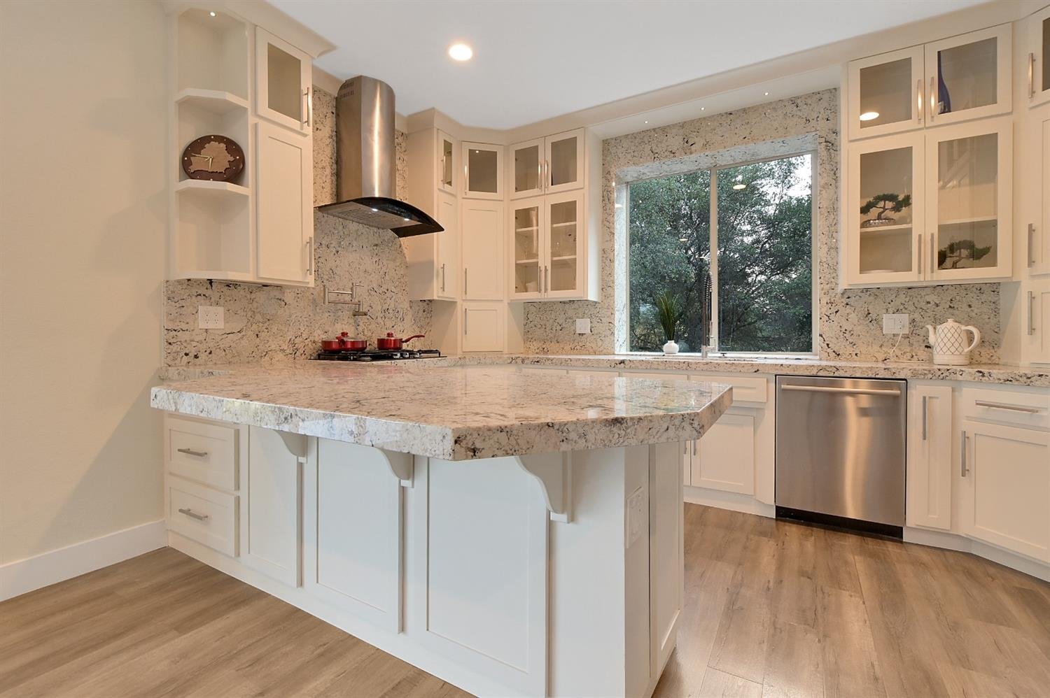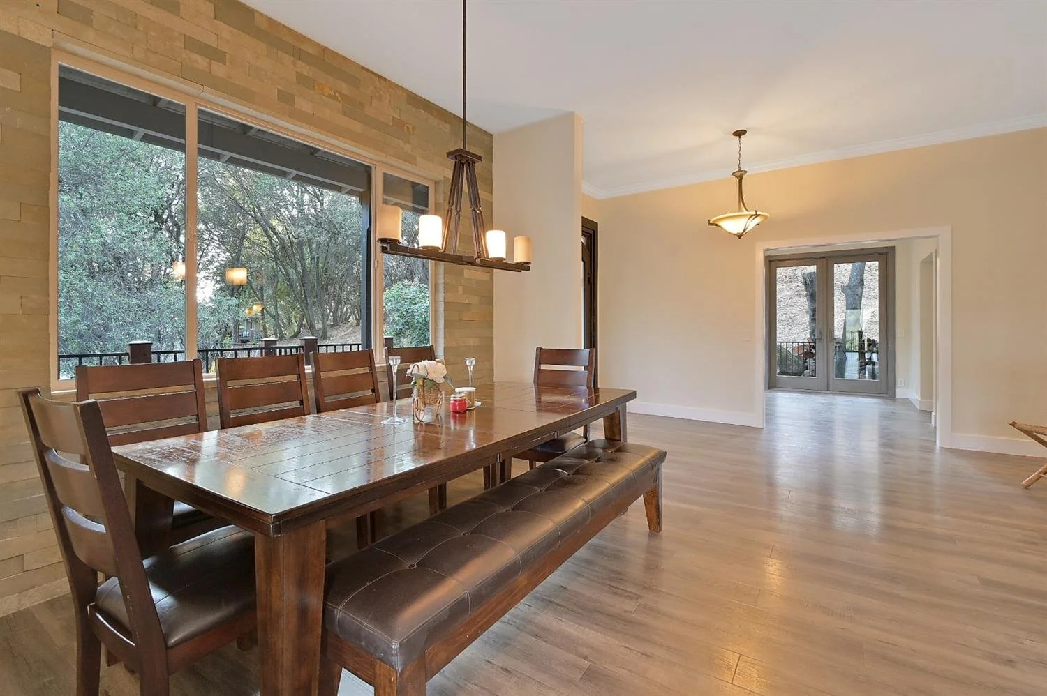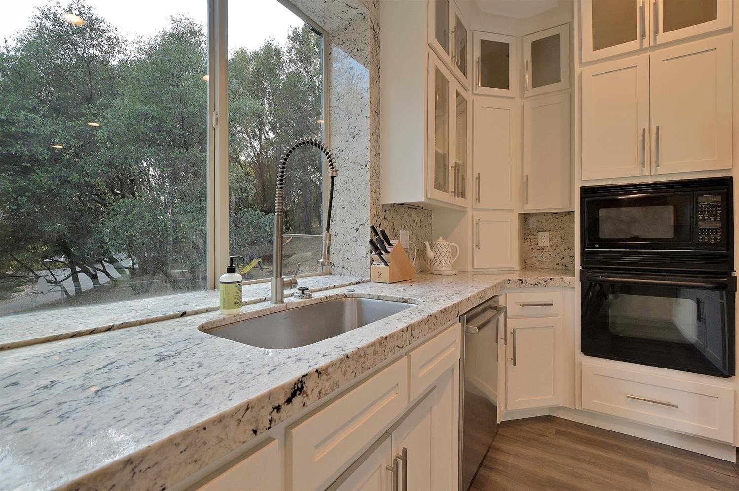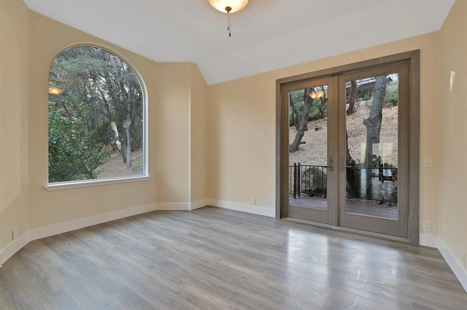 Stunning, unique, one of a kind gem in Lake Of The pines! Suited at the end of Cul-De-Sac on almost an acre! Very Private, RV or Boat parking under waterproof deck, spectacular view of Foothills! Main living level open floor concept with 10' ceiling, 3 bedrooms plus an office, 2 full bath, master suite with walk-in closet, large laundry, huge new waterproof deck! Laminate flooring throughout, infrared heating floor. Downstairs- man cave! Sauna with dip-in pool, walk-in shower, double vanity, wet bar with wine cooler, game room, relaxing room, and access to lower deck. Lower area can be used as an in-law quarter!