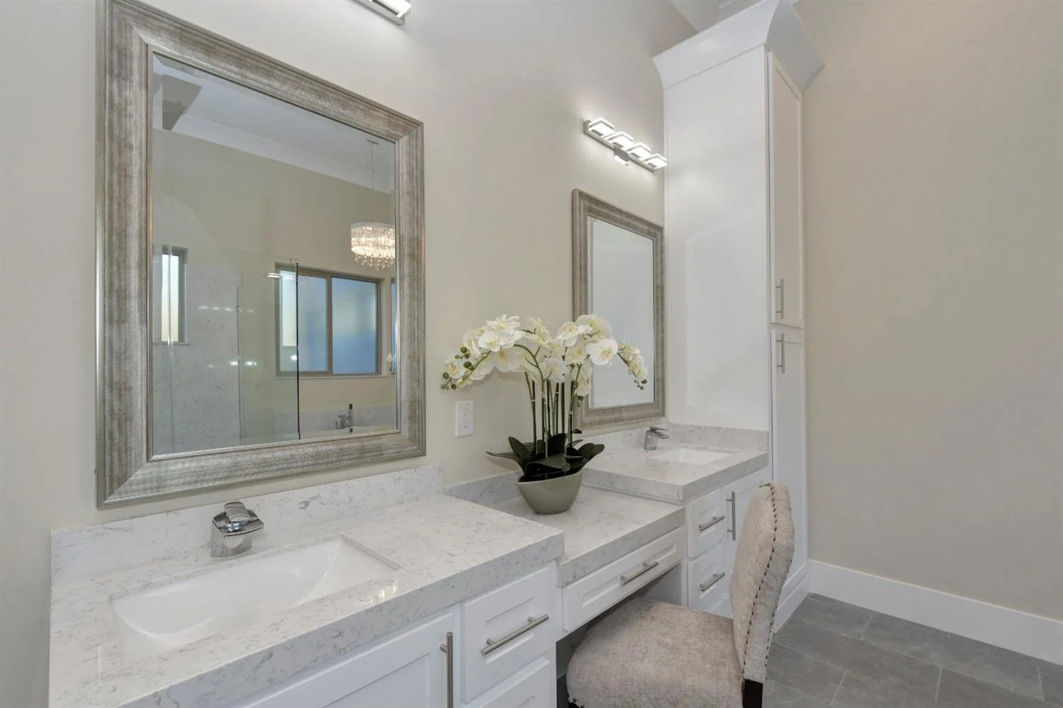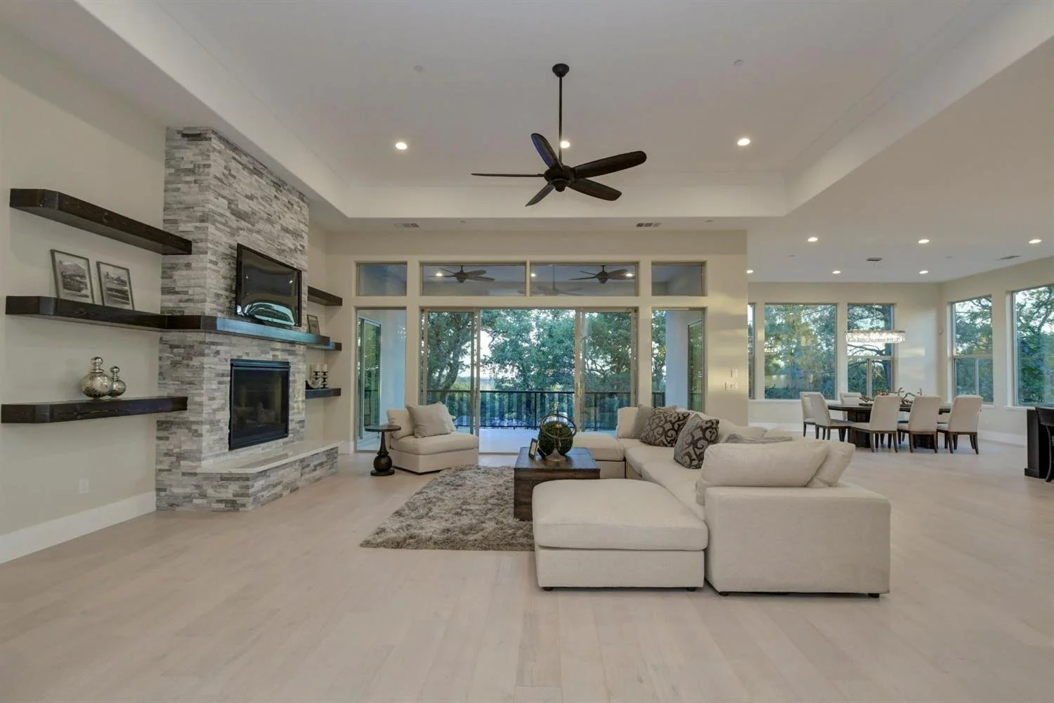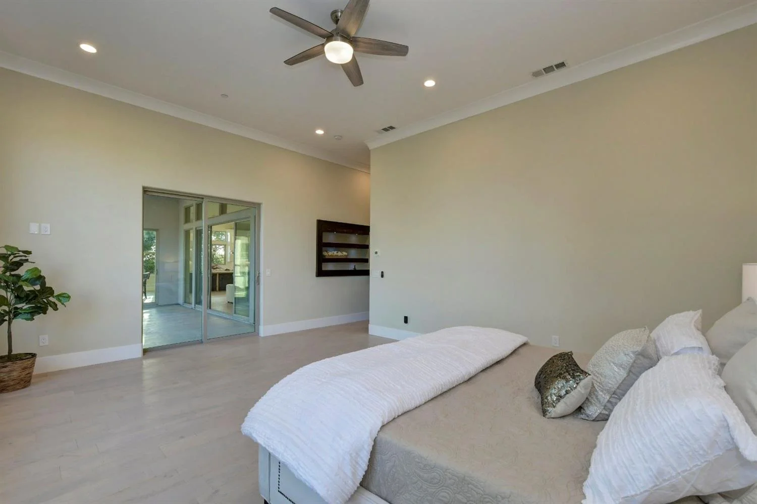 Open Concept living and kitchen offers breathtaking view of foothills, the valley, and gorgeous sunsets! Extra large walk-in pantry, gourmet kitchen with gas Verona Range, micro drawer with warmer and extra tall cabinets, huge kitchen island with double-sided cabinets, undercabinet and inside cabinet lights; master suite with wet bar and patio access conveniently located separately from other bedrooms on the opposite side, featuring a huge walk-in closet and bathroom with rainfall shower head and elegant freestanding tub. Custom shelving above bar area and around gas fireplace, wide plank hardwood floors throughout the house; solid quartz slab wall and bath surrounds; 3+ car garage with 14-foot ceiling, insulated garage doors and epoxy floor finish; laundry room with full-size sink; tankless water heater and many more custom finishes and touches throughout