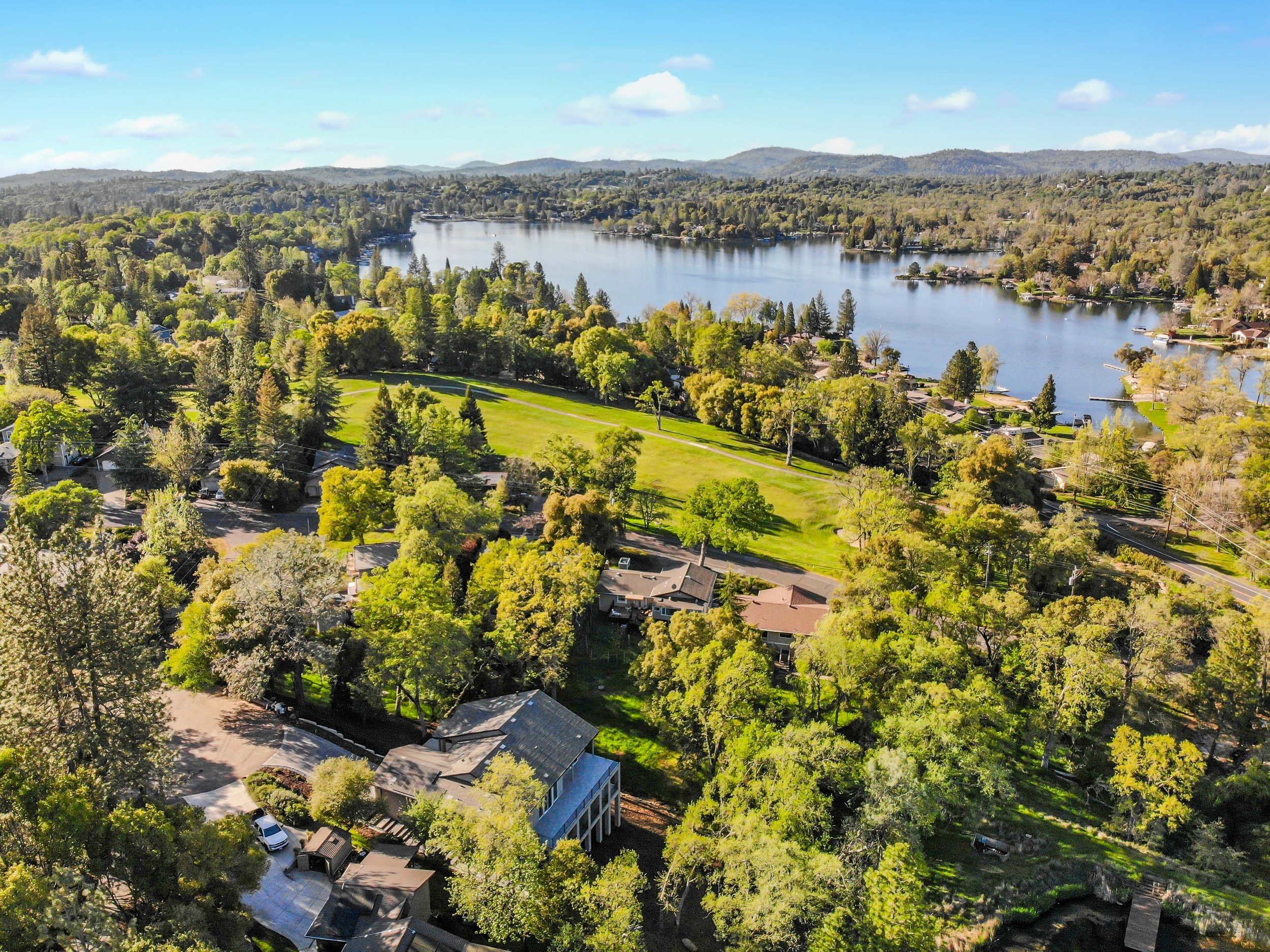 From this view, the home appears perfectly integrated between the shimmering lake and the manicured greens of the golf course. Surrounded by mature oaks and evergreens, it offers an extraordinary connection to both nature and recreation — a serene lakeside retreat with direct access to the course.